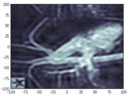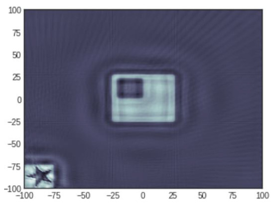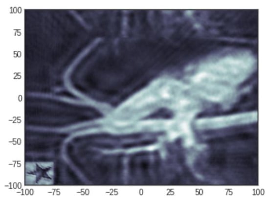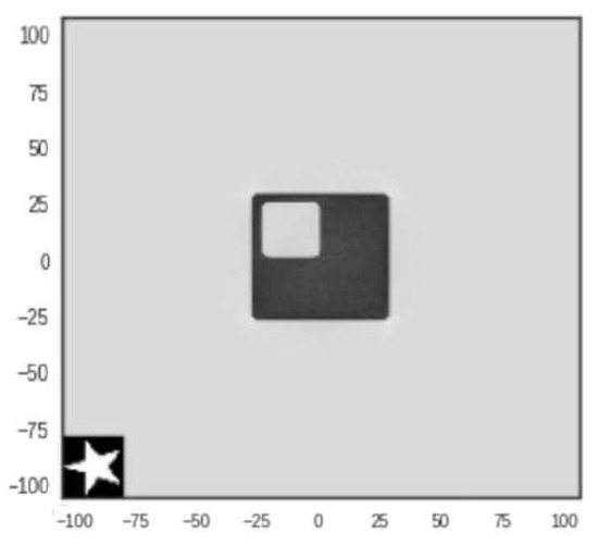 An example of a planted signal (here a star). The test sample used was developed by the National Physical Laboratory, UK, where the sample incorporates common geometries seen in industrial applications.The unit of axes is in pixels.