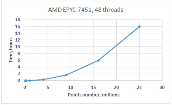 Figure 6. Dependence of computation time with the CPU AMD EPYC 7451 (48 threads) on the number of field evaluation points.