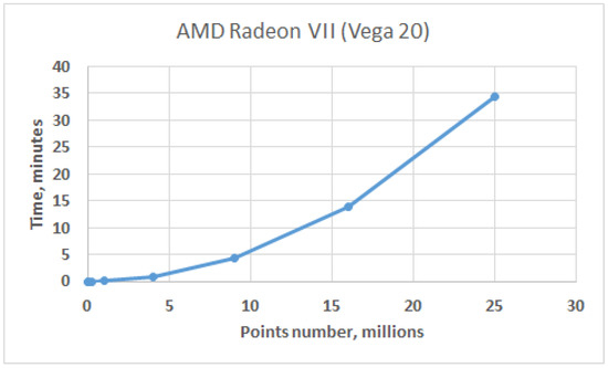 Figure 7. Dependence of calculation time with the GPU AMD Radeon VII on the number of field evaluation points.