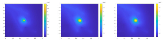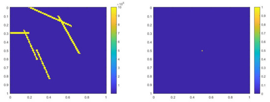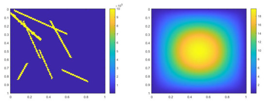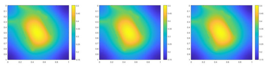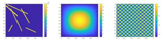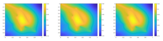 Let be the fine mesh solution for Equation (14). We use the Picard–Newton iteration to solve the implicit equation.