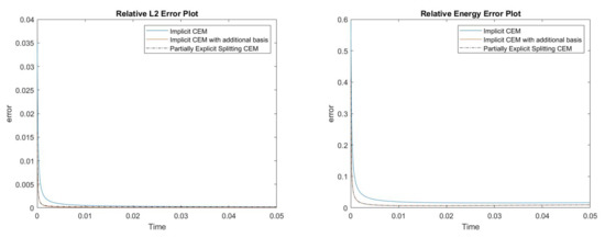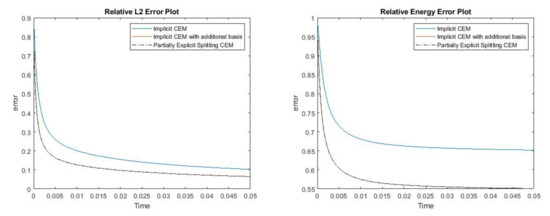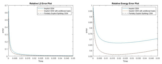 - Finally, we computed the solution with additional degrees of freedom using our proposed partially explicit approach (called “Partially Explicit Splitting CEM” in our graphs).