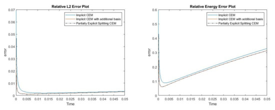 - Secondly, we computed the solution with additional degrees of freedom using implicit CEM (called “Implicit CEM with additional basis” in our graphs).