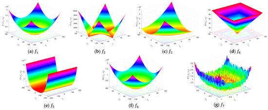 - Unimodal benchmark functions: The unimodal functions have a unique global best. Since they do not have local optima, they reveal the intensification (exploitation). These functions are suitable for exploring the convergence behavior and the intensifying strength of the proposed algorithm. The unimodal functions unimodal ( to ) considered in this work are listed in Table 3 along with their mathematical definitions;