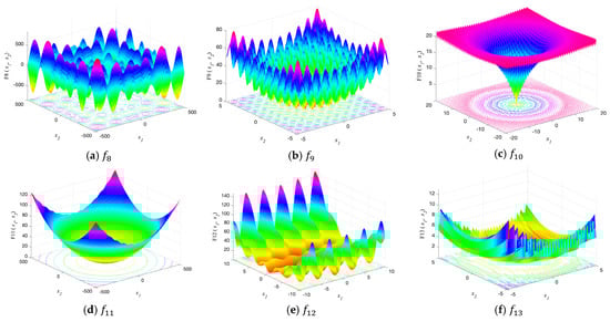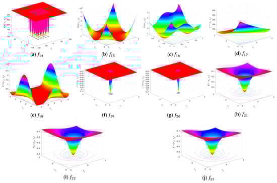 The search landscape of the objective functions i.e., unimodal ( to ), multimodal ( to ), and fixed-dimension multimodal ( to ) functions are illustrated in Figure 3, Figure 4 and Figure 5, respectively.