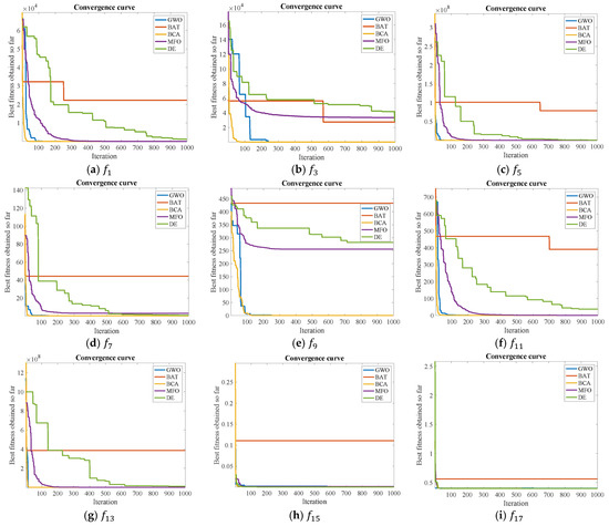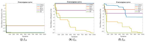 - Multimodal benchmark functions: These functions may have many local optima. Hence, the optimizer should be able to avoid stagnation around the local optimum for reaching the global optima. Therefore, these functions can unveil the diversification (or exploratory) capability of BCA and its ability to escape the local optima. The multimodal functions ( to ) along with their details are presented in Table 3. It is also worth mentioning here that that fixed-dimension multimodal functions ( to ) are also considered in this work.