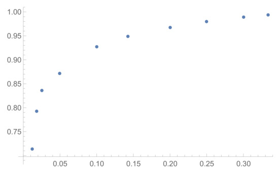 Therefore, it is necessary to define, given the network parameters (such as the length of the time slot and the number of active provers), such a maximum number of leaves so that the corresponding proof tree is completely built in a time slot with a probability of at least for sufficiently small .