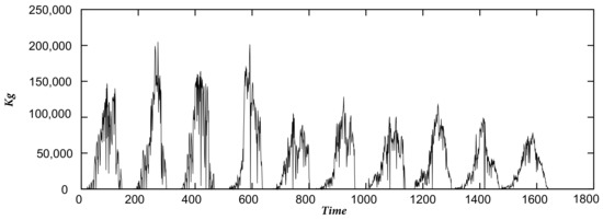 Typically, autoregressive integrated moving average (ARIMA) or seasonal autoregressive moving average (SARIMA) models have been widely used in recent years for modeling and to make predictions in the livestock [6,7] and agricultural [8,9,10] sectors. In this article, we discuss an alternative non-linear method for the cases in which the resulting series is not stationary. Although we find many emerging non-linear techniques that can be used to make both short-term and long-term predictions on non-stationary chaotic data, such as the sparse identification of nonlinear dynamics (SINDy) algorithm [11] widely used to model non-linear dynamic systems and make predictions on them [12,13,14,15], or non-linear systems reconstruction techniques that allow the regeneration of time series subjected to white noise, which would allow a new study of stationarity and eliminate the disturbances associated with the observed variable [16,17], in this work, we focus on maximal Lyapunov exponents.