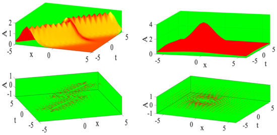 By selecting the forcing functions F, we seek two particular solutions (derived using Hirota’s method as in [10,11,12]) to the nonlinear model Equation (16) and stream-function Equation (8) as follows: