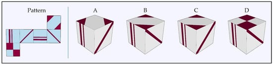 In a similar way, the DAT: SR questionnaire by Bennet et al. [58], specifically measures the student’s ability to move from the 2D to the 3D domain [59]. It consists of 50 items that require the learner to mentally fold the 2D pattern and choose from four alternatives (A–D), the correct 3D object which would result, given the original 2D pattern (Figure 4).