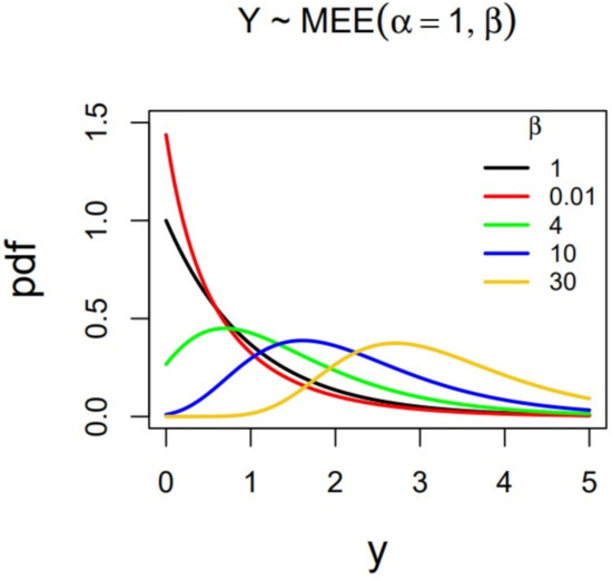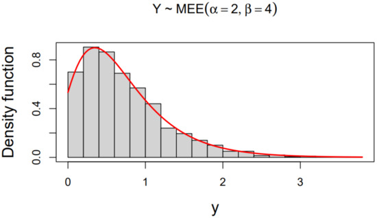 - In financial and actuarial theory, the quantile function is also known as the value at risk, (denoted as VaR), which is interpreted as the amount of capital required to ensure that the insurer (or the economic agent) does not become insolvent with a high degree of certainty. Therefore, it is of interest to have an explicit expression for this function, such as the one given in (26). This measure is also of great importance in scenarios where outliers corresponding to large empirical data may appear, which is quite common in risk theory. In this sense, we highlight that the MEE distribution seems appropriate for modeling this kind of empirical data, as can be seen in Figure 3.