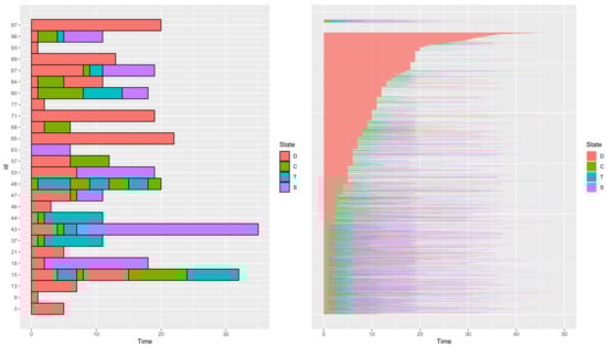 - Gabadinho, A.; Studer, M.; Müller, N.; Bürgin, R.; Fonta, P.A.; Ritschard, G. TraMineR: Trajectory Miner: A Toolbox for Exploring and Rendering Sequences, R Package Version 2.0-13; 2019. Available online: https://cran.r-project.org/package=TraMineR (accessed on 28 November 2021).