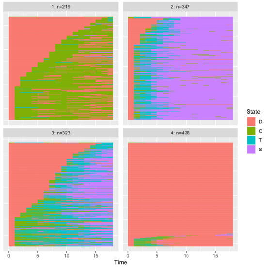 - Jackson, C.H. Multi-State Models for Panel Data: The msm Package for R. J. Stat. Softw. 2011, 38, 1–29. [Google Scholar] [CrossRef] [Green Version]