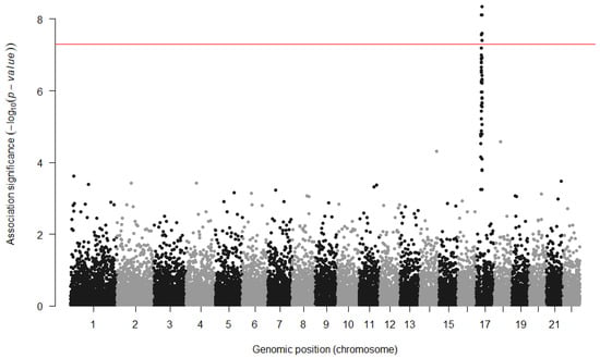 In order to take on this challenging task, GWAS was proposed as a statistical method that could be used to identify the genomic variants that are associated with complex traits or diseases. Specifically, GWAS are statistical analyses that aim to find the associations between genomic variability and a particular trait or disease []. Previous studies have required each functional hypothesis to be specifically tested in the context of a disease. In contrast, GWAS allow for the exploration of the genetic architecture of diseases at the genome-wide level, without the need of prior hypotheses beyond the existence of a genetic component behind the disease.