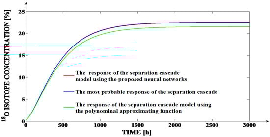 The main scope of the paper is to prove the higher accuracy obtained by using the AI (Artificial Intelligence) [,,] methods in modelling the operation of the separation cascade, in comparison with the accuracy obtained by using classic methods. The problem of modeling and controlling the separation processes is presented in several papers of the technical literature for different types of isotopes: [,,,,]. The 18O isotope is treated in many scientific articles by presenting its direct applications [,,,]. In previous papers [,,,,], some solutions for modeling and controlling the separation process for the 18O isotope production are presented. By analyzing these solutions, in most of the cases, some simplified linearized models with lumped parameters are proposed for the processes associated to the separation columns, which operate independently (they are not included in the separation cascades). Consequently, the proposed control strategies are designed based on the simplified models. Based on a proposed structure of a nonlinear distributed parameter model [,,,,] for the separation cascade operation (model which can be used for different predictions of the 18O isotope concentration dynamics), the aim of this paper is to compare the efficiency of using AI methods versus classical methods to modelling some important nonlinear components of the mentioned model. Another advantage of obtaining an accurate model of the separation cascade is the possibility to include it in an original future 18O isotope control strategy which will generate much better control performances than the actual solutions.