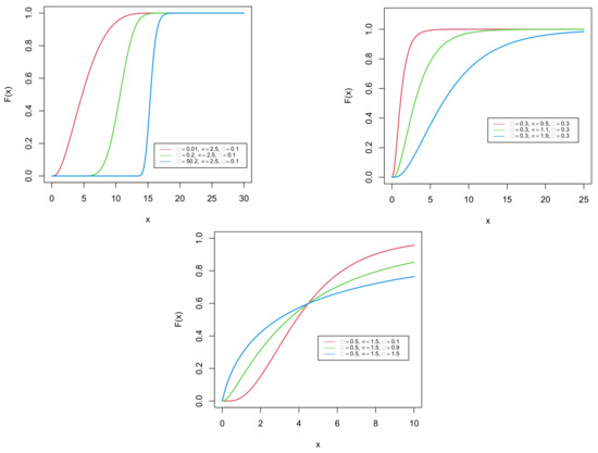 Plots of the cdf of the GDUSLN distribution.