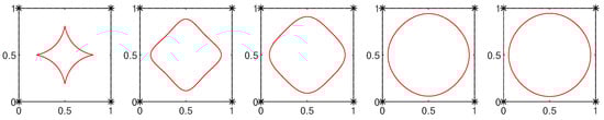 The above analysis can be seen in Figure 4, which shows the curves generated by the scheme with different choices of the parameters and .
