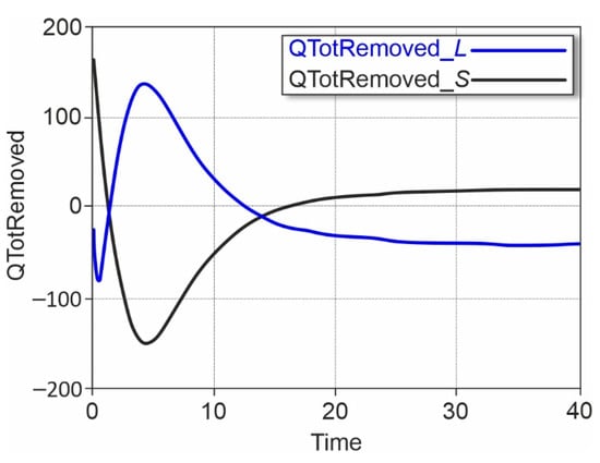 The value of the heat exchange coefficient [W/(m2 × °C)] in the system loop (QTotRemoved_S) and in the feedback line (QTotRemoved_L) at the output of the compressor model depends on a number of parameters, including the chemical composition of the coolant, its structure and density, temperature and other parameters.