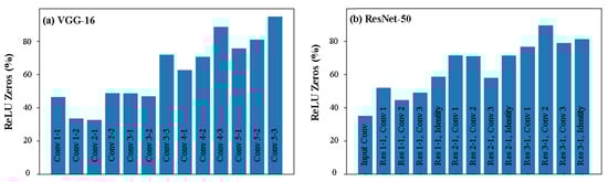 - Study of the fraction of ReLU zeros in two popular CNN models—VGG16 [16] and ResNet50 [17].