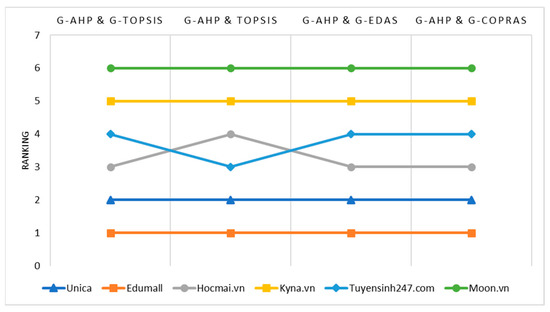 - A practical case study of evaluating e-learning websites in Vietnam is solved for the first time. A comparative analysis of other MCDM methods is conducted to test the robustness of the proposed model. The evaluation based on distance from average solution (EDAS) and the complex proportional assessment (COPRAS) methods integrated with the grey systems theory are employed for this comparative analysis. The EDAS method was propounded by Ghorabaee et al. [36] has superior advantages compared to other methods for classification, which lies in its accurate efficiency and fewer mathematical calculations, while the COPRAS method is an appropriate method to process the information in a reasonable and efficient way [37].