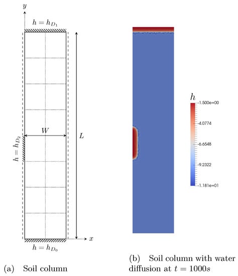- Celia, M.A.; Bouloutas, E.T.; Zarba, R.L. A general mass-conservative numerical solution for the unsaturated flow equation. Water Resour. Res. 1990, 26, 1483–1496. [Google Scholar] [CrossRef]