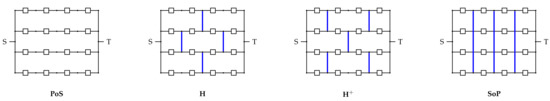 - Cowell, S.R.; Beiu, V.; Dăuş, L.; Poulin, P. On the Exact Reliability Enhancements of Small Hammock Networks. IEEE Access 2018, 6, 25411–25426. [Google Scholar] [CrossRef]
