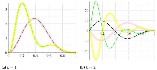 Practical simulations show that the hypothesis on s of being chosen such that is a necessary condition for Properties 4, 5, and 7. The following examples show that the sufficiency does not hold. There are cases when but (31) holds, which is shown by the following examples. The necessary and sufficient condition for Property 7 consists in both hypotheses.