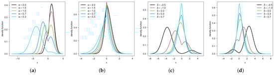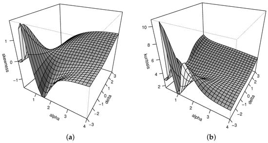 which we denote by Z ∼ . This model has been studied in more detail in Gupta and Gupta []. Pewsey et al. [] derived its Fisher information matrix, showing that it is non-singular in a neighborhood of symmetry point (), which is not satisfied for the SN distribution under the symmetry hypothesis, that is, at , because its Fisher information matrix is singular.