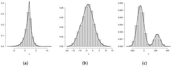 - Gómez, H.W.; Elal-Olivero, D.; Salinas, H.S.; Bolfarine, H. Bimodal extension based on the skew-normal distribution with application to pollen data. Environmetrics 2011, 22, 50–62. [Google Scholar] [CrossRef]