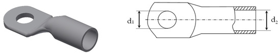 The Equation (16) also allows the calculation of the cross-section of the conductive path surface dimensions, for specified values of the load current Is, respectively of the permanent regime temperature, which is θp < θad [32]. Thus, for an insulated conductive path with circular cross-section, Figure 1, with a diameter noted dc, it can be made the replacement with the following equivalent formulas: