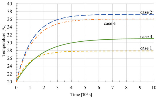 For the four cases analyzed, the temperature values at 3600 s in the contact areas are centralized in Table 7.