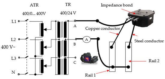 The main purpose of the article is to highlight the importance of mathematical modeling when it is necessary to anticipate temperature evolution in the constructive elements passed thru by electric currents. The main difference compared to other studies [26,27,28,29] is represented by the approach adopted in order to equivalate mathematical modeling with FEM simulation. The article’s aim is to provide mathematical modeling of temperature evolution within electrical contacts and to transpose this into a FEM analysis model which can be further used in estimating temperature for different values of currents passed thru. As the state of the art [30,31] in regard to mathematics applied in industry temperature anticipation, and also validated by means of infrared investigation [31], the present article provides particular mathematical equations applied in electrical installation in order to calculate, simulate the temperature evolution for a specific electrical application from the return circuit of railway electric traction. Validation experiment conducted by infrared investigations refers to a portion of the power supply system return circuit of electric traction which uses a single-phase current with a frequency of 50 Hz and a voltage of 25 kV, specific for Romanian railway electric traction. This portion of the power supply system return circuit focuses on the electrical contact between impedance bond and connection conductors to the railway rails.