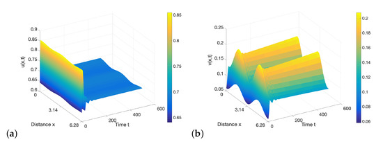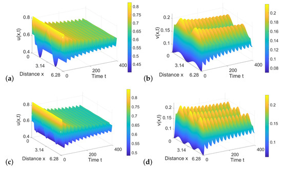 - An, Q.; Jiang, W. Spatiotemporal attractors generated by the Turing-Hopf bifurcation in a time-delayed reaction-diffusion system. Disc. Contin. Dyn. Syst. B 2019, 24, 487–510. [Google Scholar] [CrossRef] [Green Version]