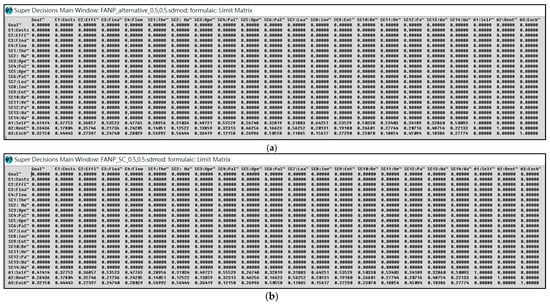 The limit supermatrix is displayed as: (a) description of the alternatives; (b) description of the sub-criteria.