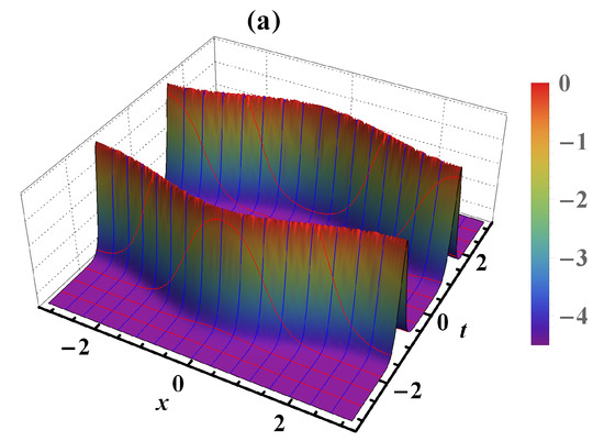 The dynamical behavior of the oceanic waves affected by the Earth’s rotation is explained through some graphs of the solutions in the contour, three, and two-dimensional Figure 1, Figure 2 and Figure 3 when Additionally, the stability of the obtained solutions can be checked through the Hamiltonian system’s characterizations which lead to demonstrate the stability property of Equation (8) when and where the momentum of Equation (8) is given by