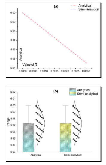 Moreover, the accuracy of constructed solutions where the analytical scheme is a new scheme was verified by applying the AD and EK semi-analytical methods based on the constructed analytical solutions to evaluate the initial and boundary conditions of the FNO equation. The accuracy of the analytical and semi-analytical solutions is explained in the above—Table 1, Table 2, Table 3, Table 4, Table 5 and Table 6 and is presented in Figure 4, Figure 5, Figure 6, Figure 7, Figure 8 and Figure 9.