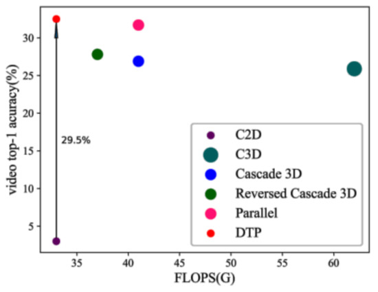 In the literature, researchers have proposed a few advanced spatial-temporal convolution structures. For intuitive comparison, the spatial-temporal convolution structure proposed by other researchers and the new structure we proposed in this paper are put together here and they can be formally divided into six categories: C2D [30,31], C3D [25,32], cascade 3D [27,33], a reversed cascade 3D (derived from [27]), parallel [34] and DTP.