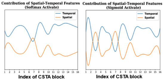 The spatial-temporal features distribution among CSTA blocks.