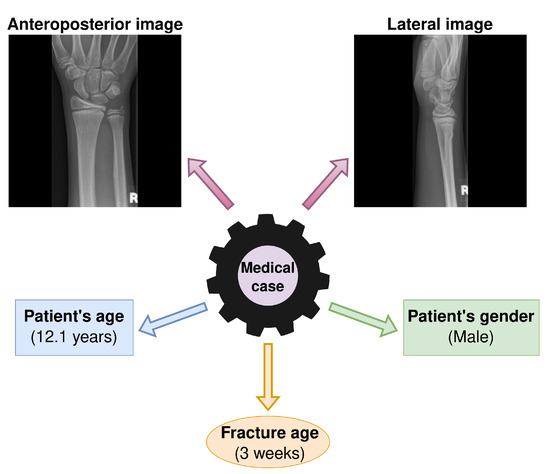 Example of one medical case that consists of Patient’s age and gender, anteroposterior and lateral image, and fracture age.