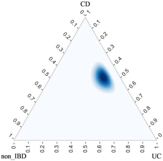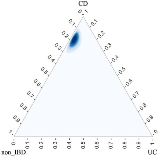 In the category, Table 28, we found that, is quite low, and , that is, the estimated probability of an individual with UC to be diagnosed as CD is surprisingly high.