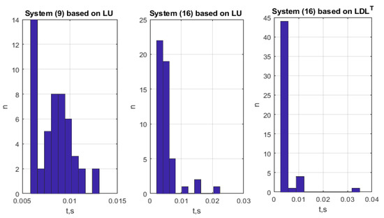 The solution time for the proposed method is less than that used in [34]. It is also not required to determine the optimal parameter . The LDLT decomposition-based implementation turned out to be faster than the LU decomposition-based implementation.