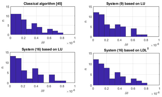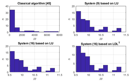 - The matrix is non-Hermitian. It is impossible to apply LDLT decomposition for the solution of the system of Equation (9) [52].
