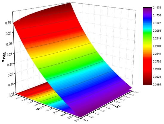 Table 4 represents the influence of various parameters on cylindrical and spherical shapes of the local Nusselt number. It shows that because of a raise in the Prandtl number , the cylindrical and spherical shapes of the Nusselt number are enhanced. Conversely, cylindrical and spherical shapes of the Nusselt number decline due to an increase in the slip parameter and heat generation parameter .