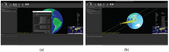 Spatial information network computing environment simulation platforms. (a) Satellite management. (b) Observation scene.