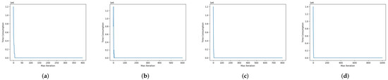 PSO solution process based on different parameter settings. (a) PSO process based on parameter P1, (b) PSO process based on parameter P2, (c) PSO process based on parameter P3, (d) PSO process based on parameter P4.