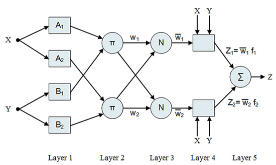 Fuzzification, inference, normalization, consequence, and output are the five layers that make up ANFIS’ architecture. In Figure 2, these layers are depicted.