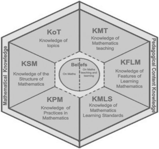 - Carrillo, J.; Climent, N.; Montes, M.A.; Contreras, L.C.; Flores-Medrano, E.; Escudero-Ávila, D.; Vasco, D.; Rojas, N.; Flores, P.; Aguilar-González, Á.; et al. The mathematics teachers’ specialised knowledge (MTSK) model. Res. Math. Educ. 2018, 20, 236–253. [Google Scholar] [CrossRef]