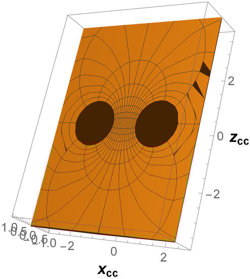 Moreover, when is close to zero, then the cap-cyclide bi-dimensional system approaches standard toroidal geometry, as in the Figure 1.