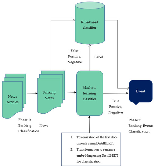 - Dogra, V. Banking news-events representation and classification with a novel hybrid model using DistilBERT and rule-based features. Turk. J. Comput. Math. Educ. (TURCOMAT) 2021, 12, 3039–3054. [Google Scholar]