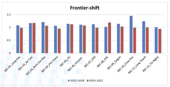 The results of the Malmquist model are divided into three cases []: (1) If MPI > 1, represents a productivity improvement. (2) If MPI = 1, represents constant productivity. (3) If MPI is < 1, represents a decrease in productivity.