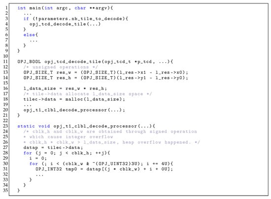 Vulnerability analysis. We use a real-world application program vulnerability to analyze the effectiveness of our approach, as shown in Figure 5. This is a code snippet from openjpeg [] which contains a heap-buffer-overflow vulnerability (i.e., CVE-2020-8112).